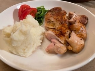 娘の好きな味付けの鶏肉のステーキと娘のリクエストしたアイスクリームのケーキでささやかなお祝い。